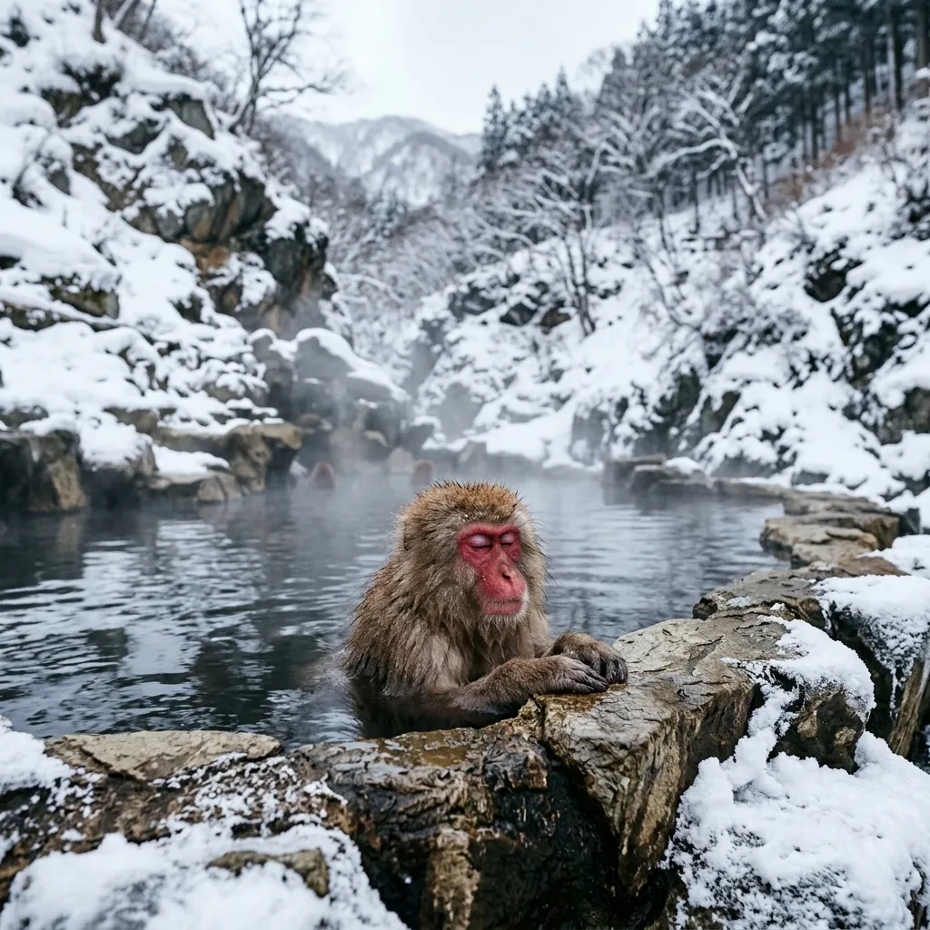 Uno de los iconos visuales de Japón. En este parque natural, los macacos japoneses bajan de las montañas en invierno para bañarse en las aguas termales naturales (onsen). Verlos relajados entre el vapor y la nieve es una experiencia inolvidable (y muy graciosa).